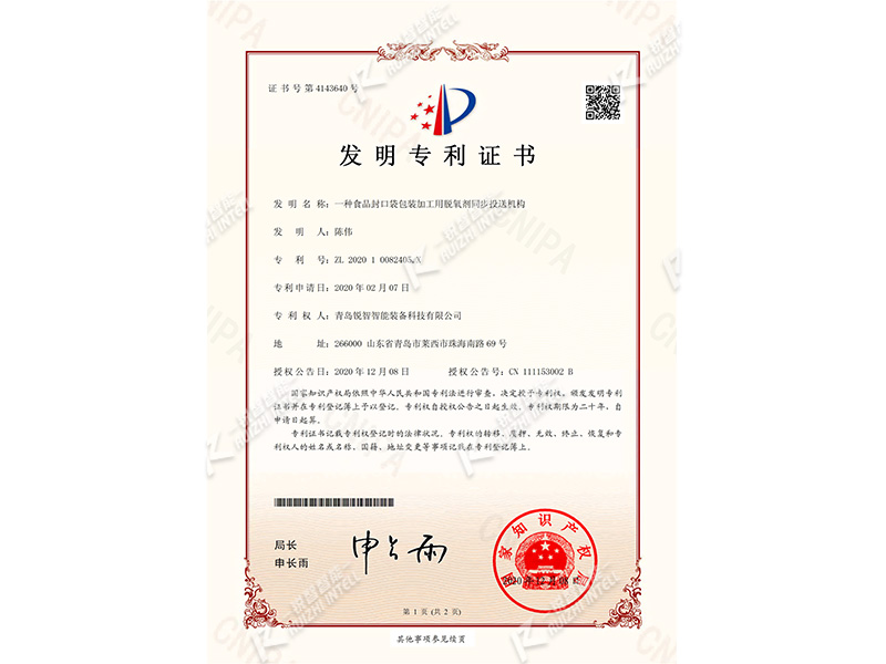 一種食品封口袋包裝加工用脫氧劑同步投送機(jī)構(gòu)